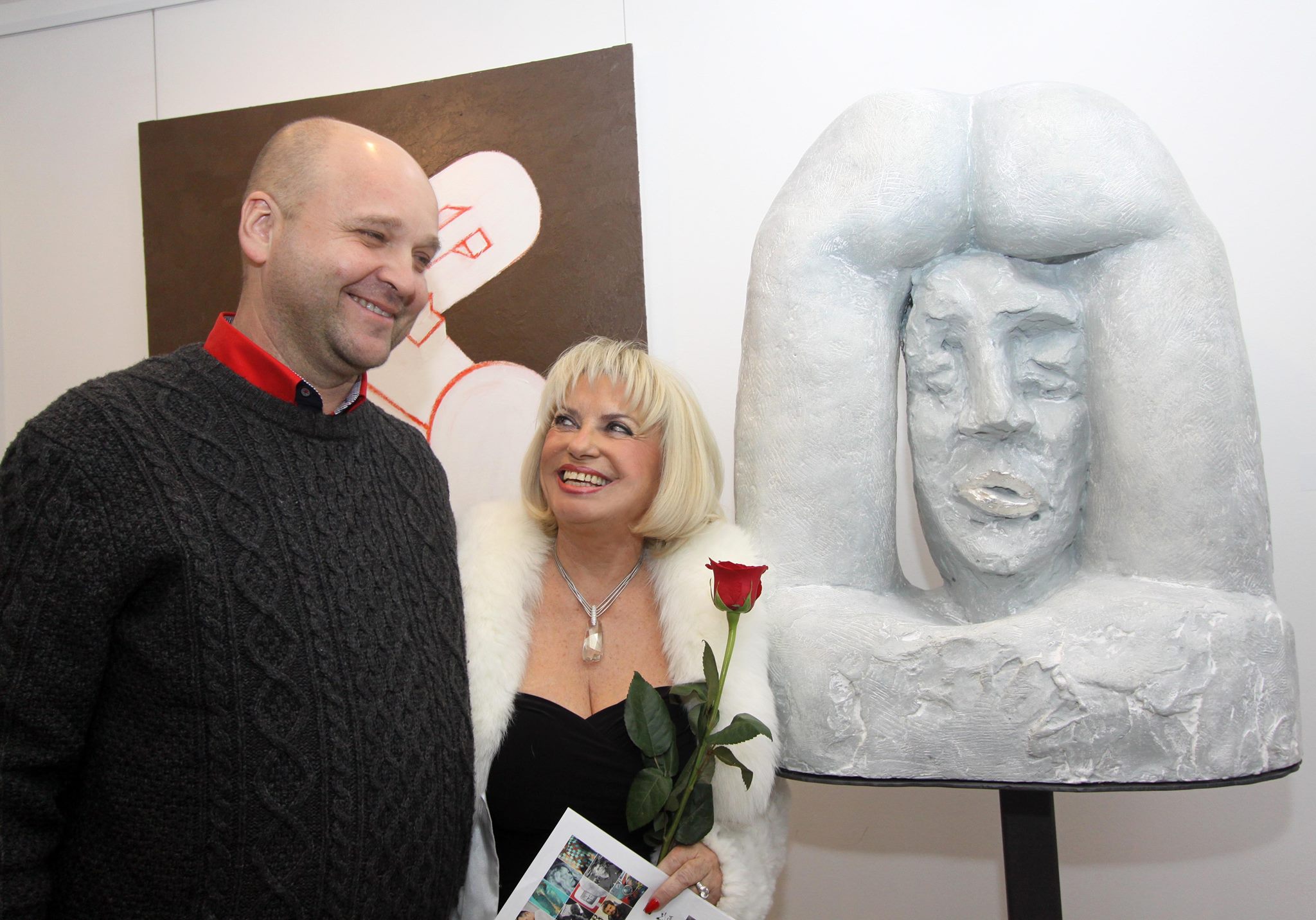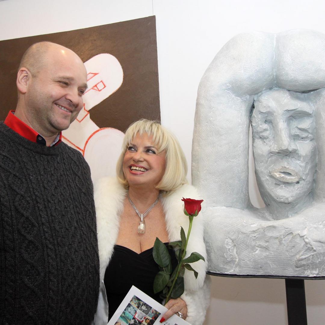 Stolze Galeristin Olinka Kohlerova mit Ladislav Černý12.2013 Bratislava Slowakei