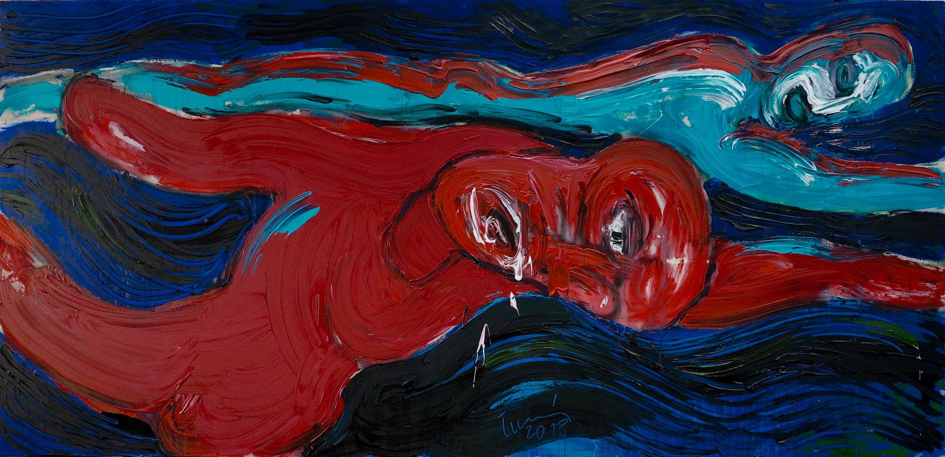 Schwimmer Ladislav Černý 130 x 270 cm Gemälde (H x B) Leinwand Acryl Body Figurative BUY NOW exklusive in the BURN-IN Online-Depot More Artworks Kopf 4 Maskenball Emotion XVI Zwei Ohne ein Wort Roulette more