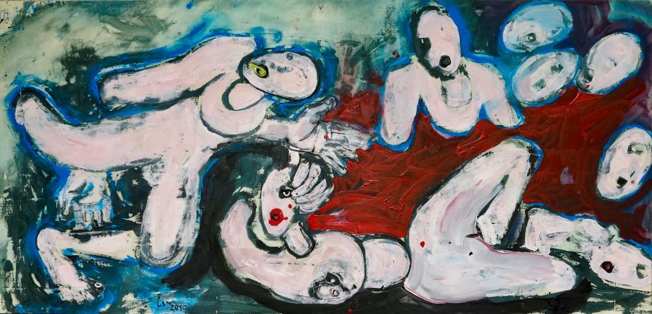 Bad Ladislav Černý 155 x 322 cm Gemälde (H x B) Leinwand Acryl Body Figurative BUY NOW exklusive in the BURN-IN Online-Depot More Artworks Emotion I Engel I Goldfisch Geflüster 3 Teiler Emotion XXIII Begegnung more