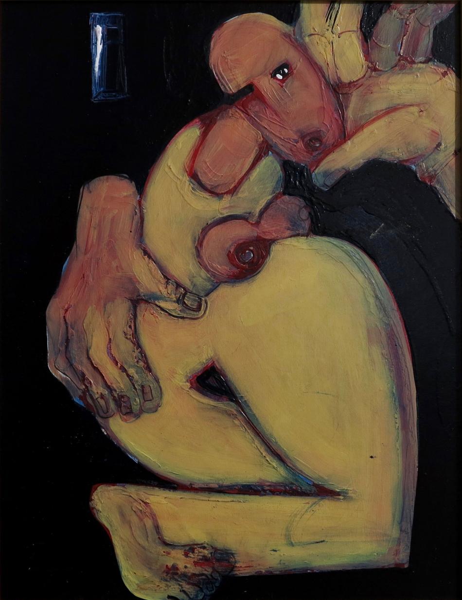 Emotion XXI Ladislav Černý 39 x 30 cm Gemälde (H x B) Karton Acryl Body Figurative BUY NOW exklusive in the BURN-IN Online-Depot More Artworks Beichte Wind in den Haaren Emotion III Dieb der Gedanken Weißes Kissen - Schwarzer Traum Dark Emotion more