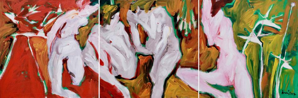 Geflüster 3 Teiler Ladislav Černý 87 x 290 cm Gemälde (H x B) Leinwand Acryl Body Figurative BUY NOW exklusive in the BURN-IN Online-Depot More Artworks Dark Emotion Emotion IX Schatten Aufgeschobener Engel Meerjungfrau Alzheimer more