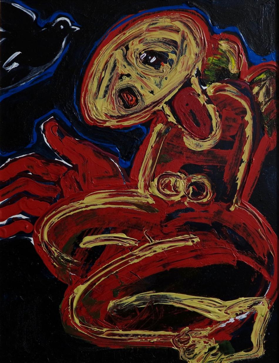 Schwarze Taube Ladislav Černý 39 x 30 cm Gemälde (H x B) Karton Acryl Body Figurative BUY NOW exklusive in the BURN-IN Online-Depot More Artworks Trio Roulette Dialog Adam und Eva Wort Verflüchtigend more