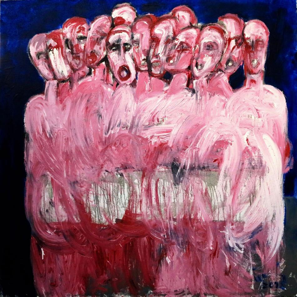 Solo Ladislav Černý 200 x 200 cm Gemälde (H x B) Acryl Body Figurative BUY NOW exklusive in the BURN-IN Online-Depot More Artworks Schwimmer Sehnsucht Nachtwache Emotion II Weißes Kissen - Schwarzer Traum Grüne Maske more